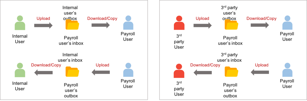 2. Internal and third party transfer folders, to exchanging documents between payroll users and internal/3rdparty users (based on payroll groups).