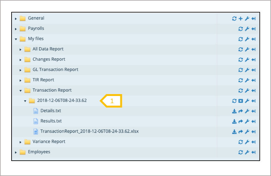 The My Files folder is specific to each user, it stores all of the reports requested by a user. There is a folder for each type of report, and within each of these folders, sub folders are generated for payrolls.