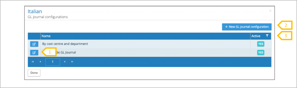 Any number of GL Journal configurations can be produced, old configurations can be set to inactive. Existing configurations can be edited and new configurations can be created.