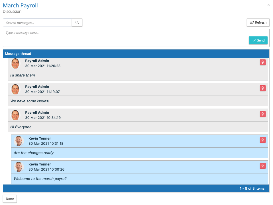 All users within a messenger group can view and contribute to a messenger topic discussion, the group does not restrict information based on user groups or payrolls groups, and therefore it is important to understand the confidentiality of the information shared within the group.