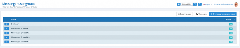 The tenancy administrator has the responsibility to create Messenger groups, go to administration > user groups > messenger users. This will display a list of the existing messenger groups that have been set-up.