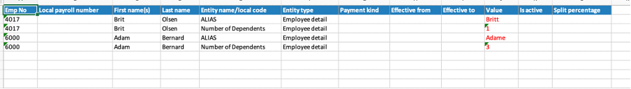 Persistent Employee Details can now appear listed out in a Flexible Changes report when the ‘Report All Effective Data’ options is selected in a List tab on the configuration. When selected, all active persistent employee details will be listed out with the changes highlighted in Red and the unchanged details in Black.