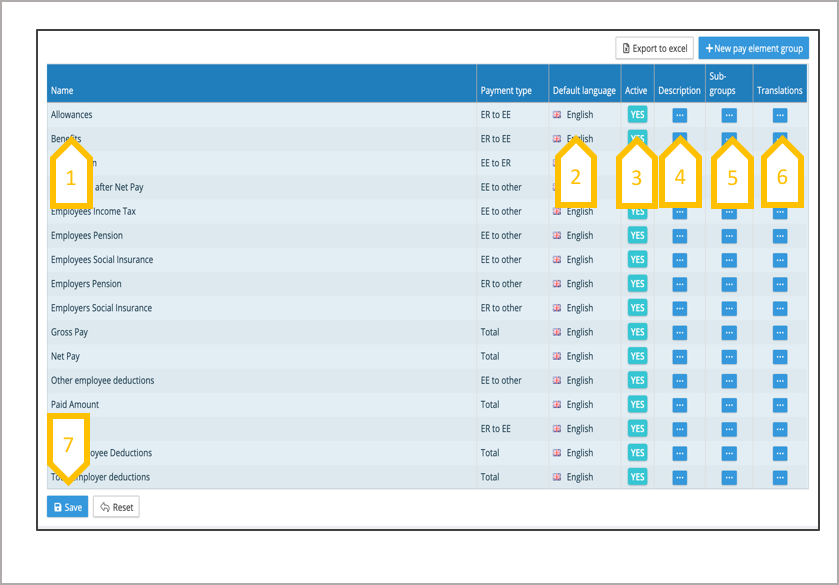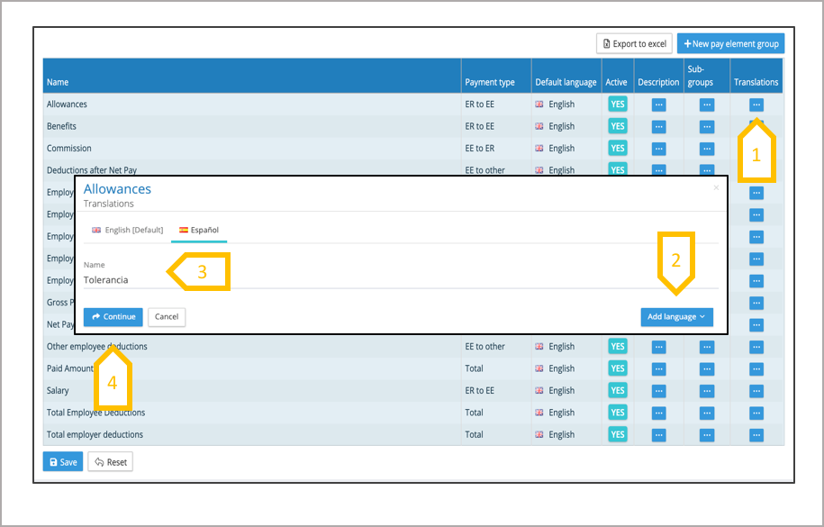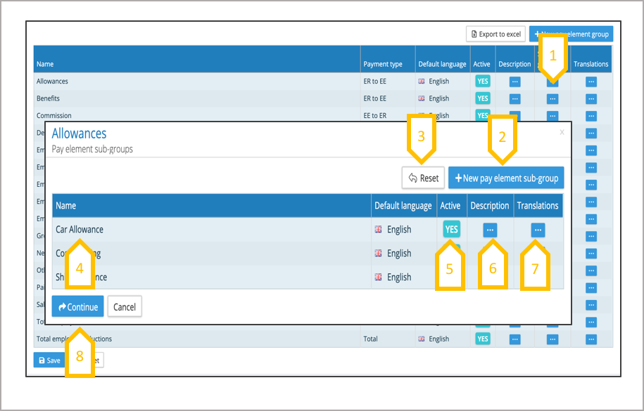 7. Add translations to the pay element sub group name.