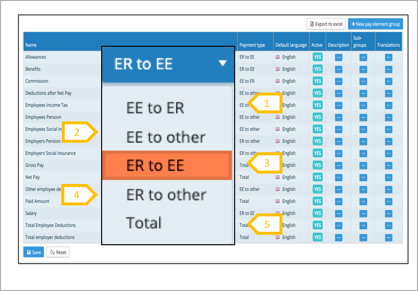 2. EE to Other (employee to other) are statutory deductions (e.g. taxes) or payments to third party pension schemes.