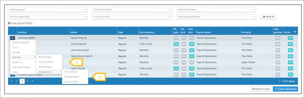 2. Create or edit report configurations (All data, changes or variance).
