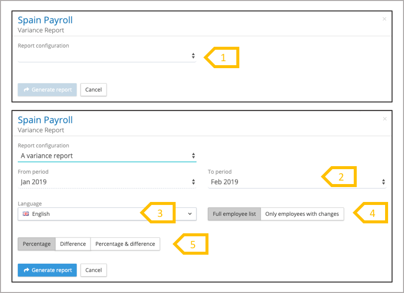 1. Select the type of report (All data, changes or variance).