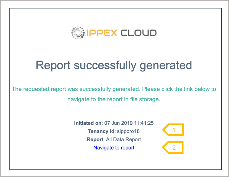 2. A link to retrieving the report from My Files.