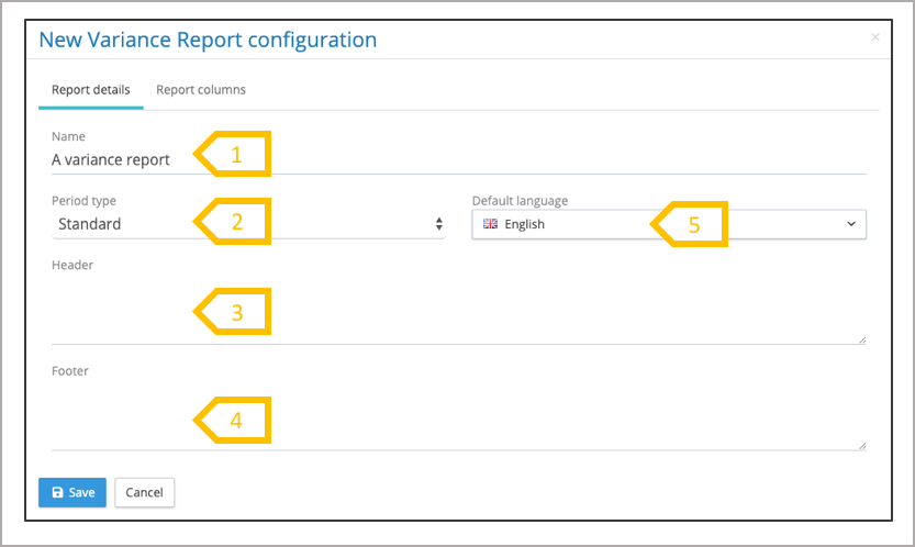 Creating a new variance report configuration