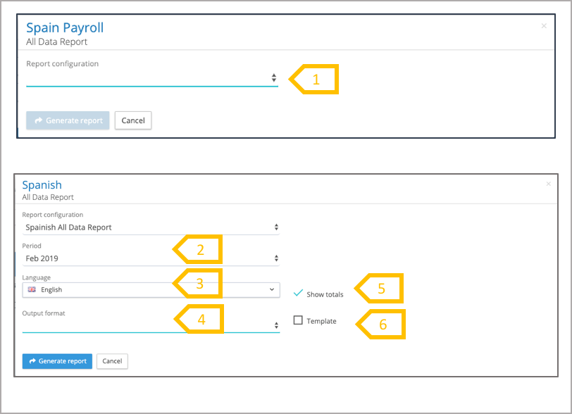 - Select the reporting language for the report headings (pay elements and employee details). If translations have not been added for the language chose, the headings will be in the default language.