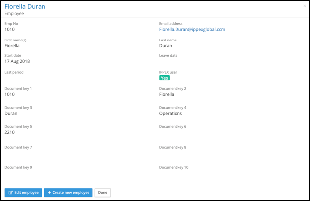 Document keys can be either manually entered into the employee record on screen (from the action menu against an employee, select view employee then select Edit employee) or added/edited using employee upload.