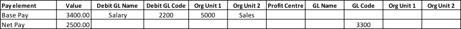 pay elements will vary according to the GL reporting, the following is an