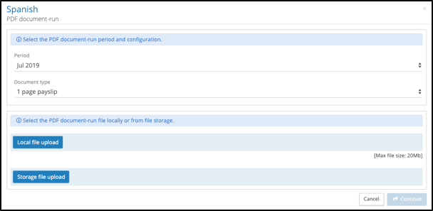 ‘Initiate Payslip-run’ has been replaced by ‘Initiate PDF Document-run’, enabling the upload of payslips and documents using the document-run configurations.