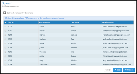 Select the employees and click on proceed, and the PDF Document Run will carry out the process in the background.