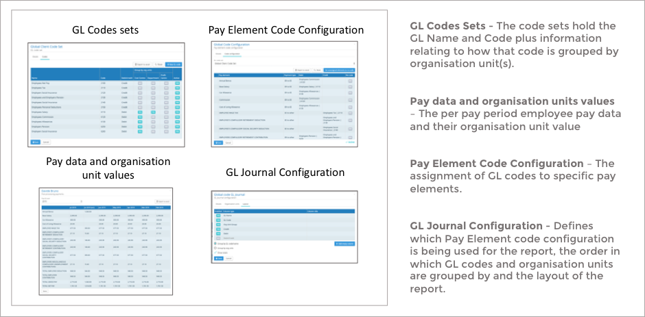 Version 1.9 introduced the GL Journal transaction report. This report enables those users configuring the GL code sets and GL code configuration to validate the code and its correct assignment to pay elements.