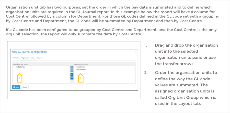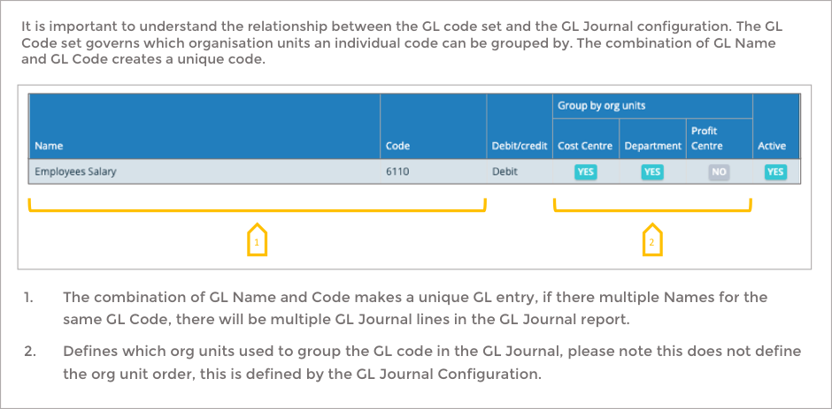 - GL Codes Sets – The ability to store, at a tenancy level, one or more GL codes sets. The code sets hold the GL Name and Code plus information and govern how that code is grouped by organisation unit(s).