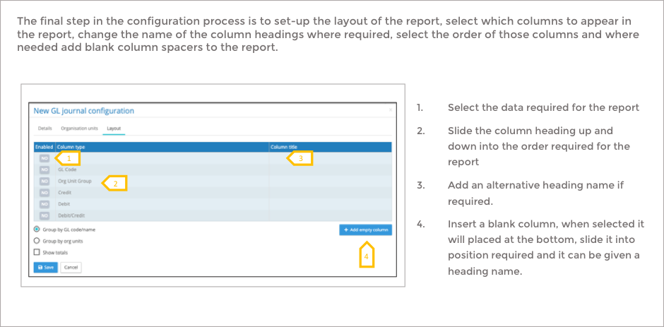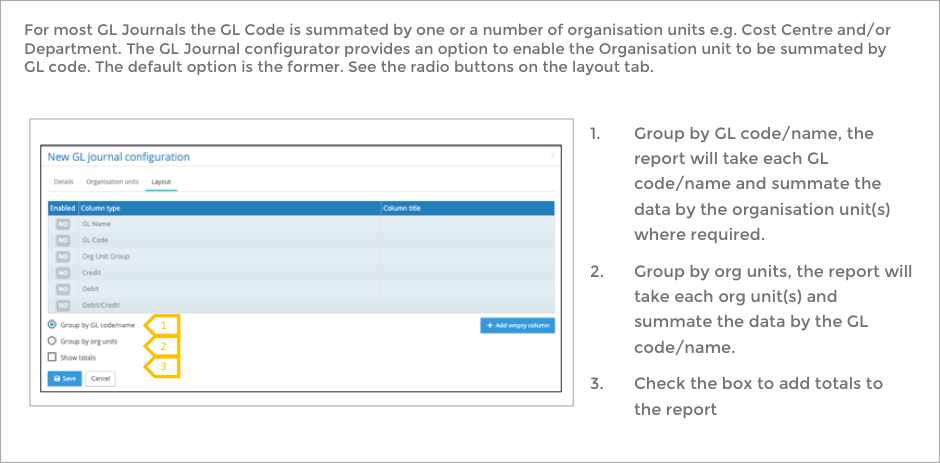 The following is an extract from the user guidance material on GL Journal Reporting.