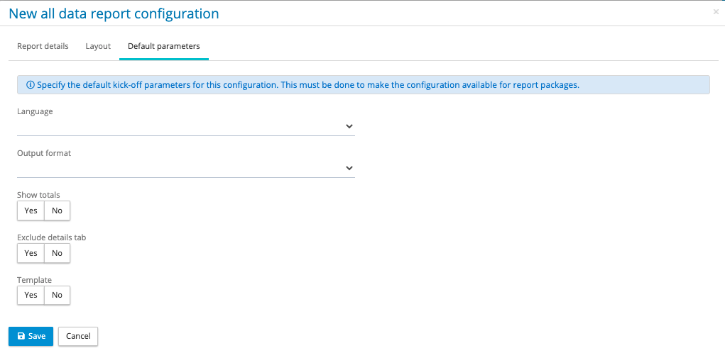 Default parameters tab has been added to all existing reports configured on your payrolls. The default parameters are NOT needed when initiating the report through the current kick-off process, they will only be needed if that report is going to be included in a reports package.
