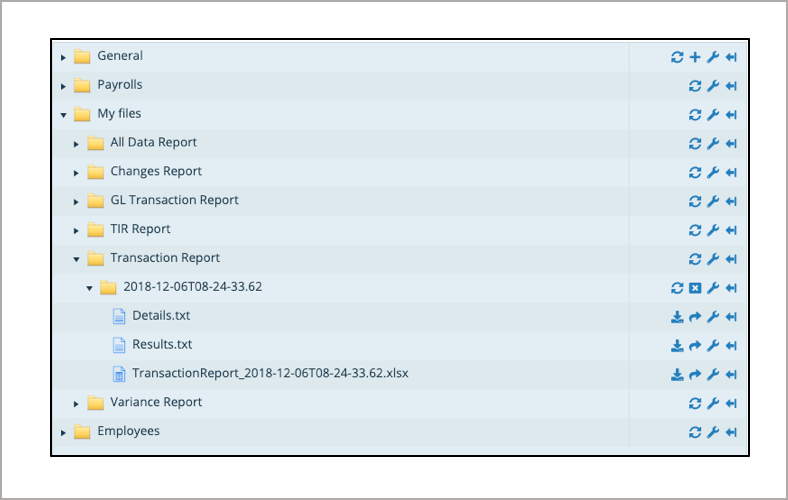 A transaction report is a multi-payroll and multi-pay period report, found on the main menu under reports. A transaction report contains one row of data for each transaction, reporting transactions for every employee on every payroll and pay period. As a result, a report can have many lines if executed over a large number of payrolls for an extended time period. All reports are processed as a background service, to preserve system responsiveness for other users.