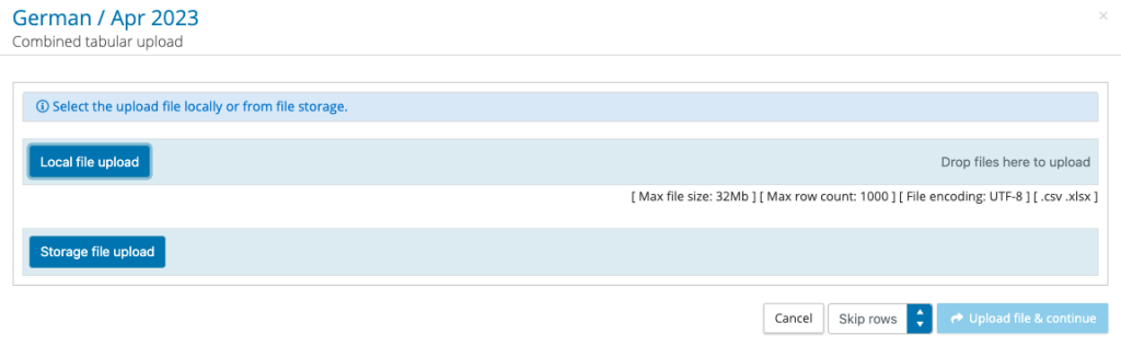 A new ‘skip rows’ listbox will be visible at the bottom of the upload screen, when required enter the number of rows that are to be skipped at the top of the file during upload.