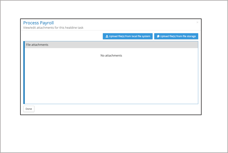 5. View/edit attachments for this headline task – Documents can be attached to the task and then viewed/downloaded.●