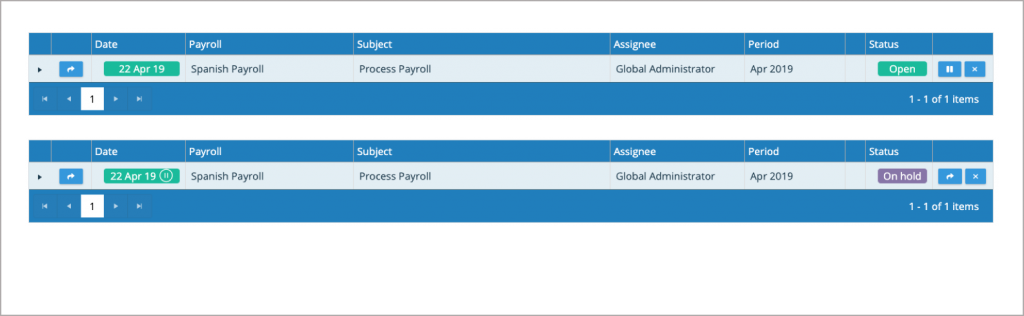 5. Some tasks are enabled to have an on-hold status, an on-hold task contains a ‘pause type’ icon.