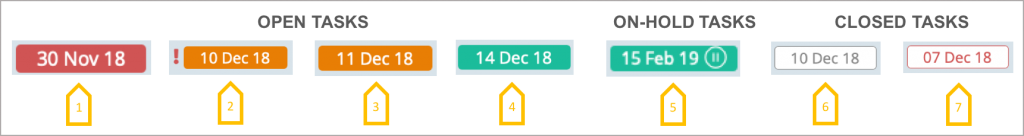 The due date for each task is given a colour based on its status and the due date in relation to today’s date.