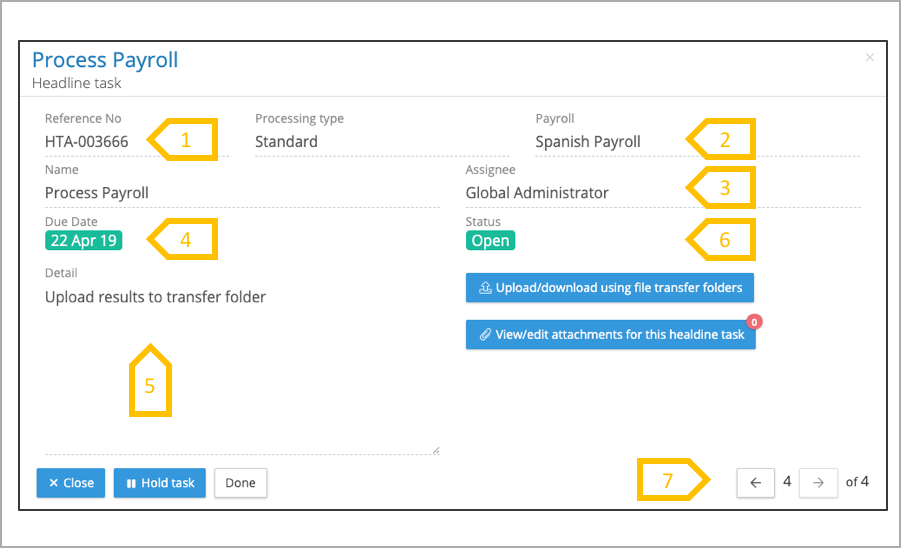 6. Task status – Open, closed and On-hold (this option is only available if it has been enabled for this particular task).