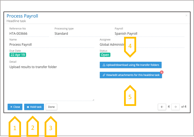 5. View/edit attachments for this headline task – Documents can be attached to the task and then viewed/downloaded. ●
