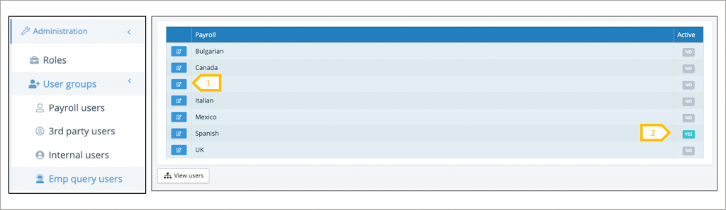 - Click on the edit button to assign system users to the query group for the payroll.