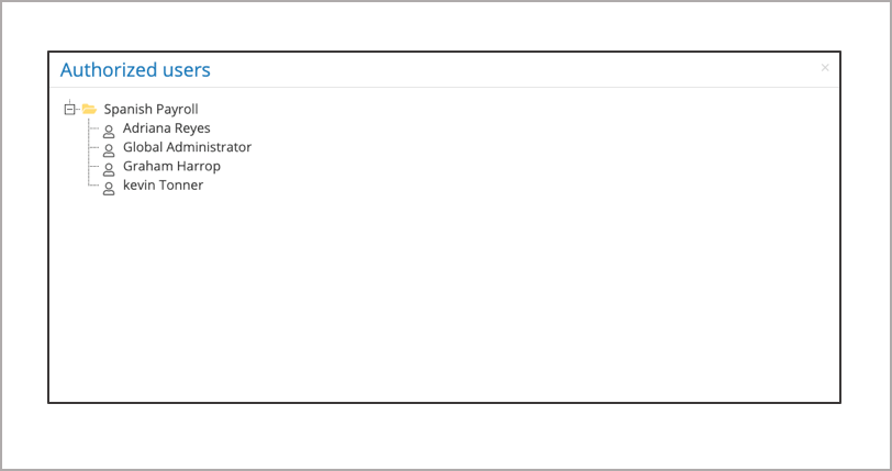From the payroll screen, using the action button against the payroll select user → Authorised users. This provides a list of all the users who have access to the payroll.